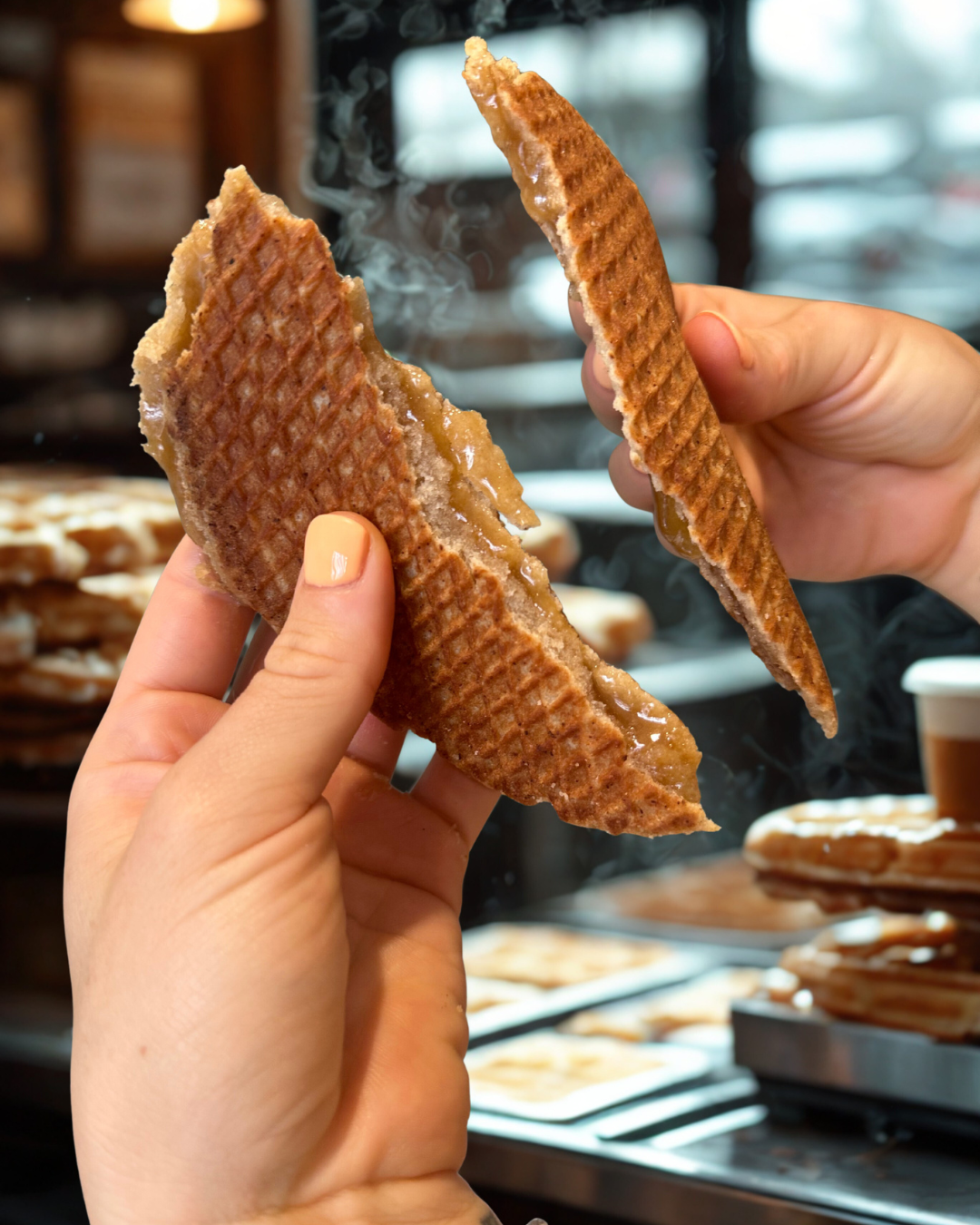 A traditional Dutch treat: two thin layers of crispy waffle joined by a soft caramel syrup. Dutch Stroopwafels are perfect to enjoy with your coffee or tea, adding a sweet and authentic touch to every moment. Made following the original recipe, they are the perfect balance between texture and flavor, with that artisanal charm that wins you over from the first bite.